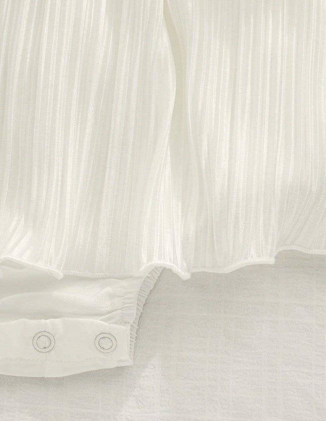 This elegant baby or toddler girl white gauze dress features soft pleats and a pearl-adorned neckline—perfect for birthdays, baptisms, weddings, and more. Designed for comfort and style, this lightweight summer dress is ideal for toddlers attending special events. Makes a beautiful gift for a first birthday, flower girl role, or any special milestone.
